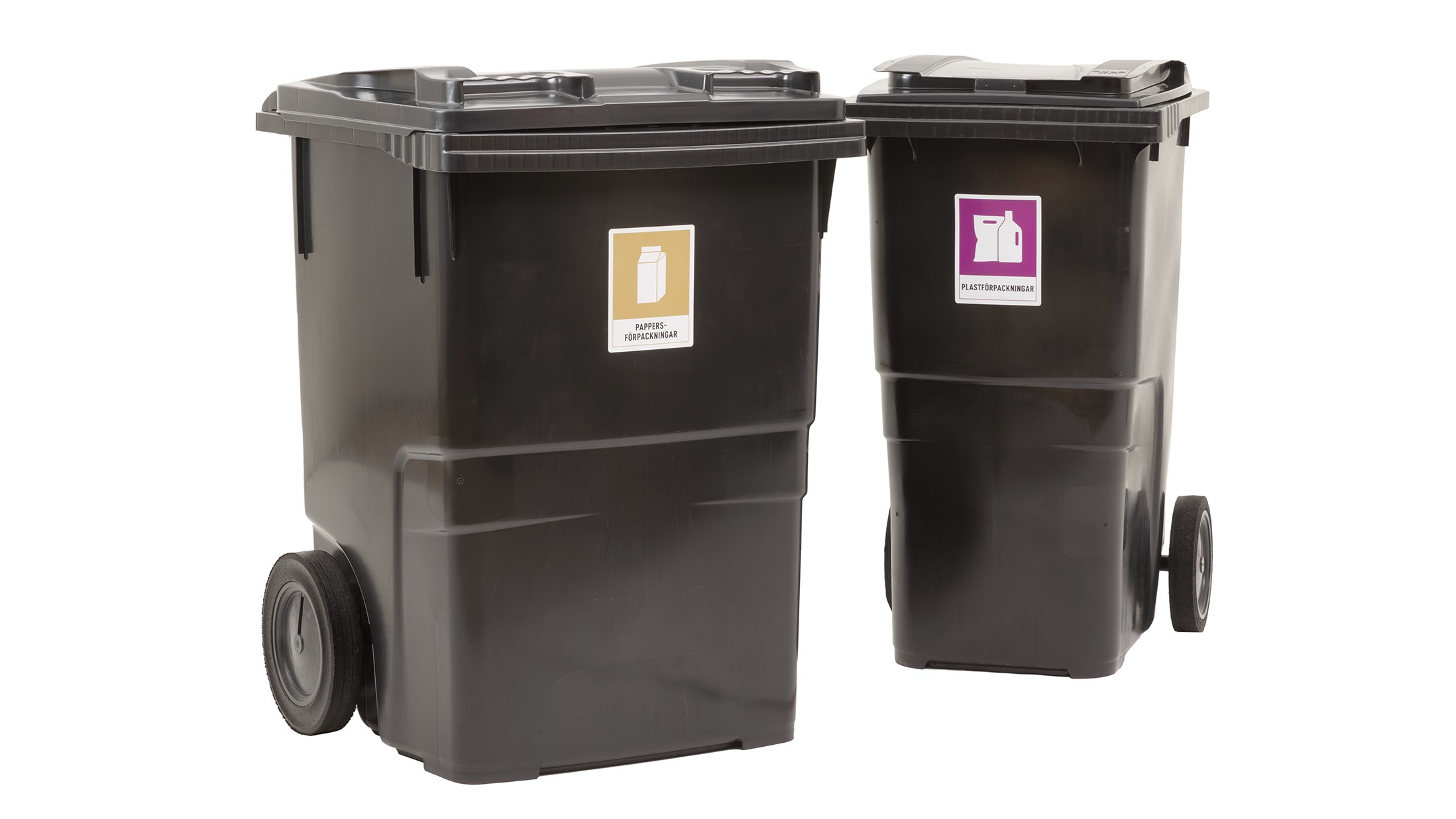 Standardpaket är 240 liter för plast och 370 liter för pappersförpackningar.