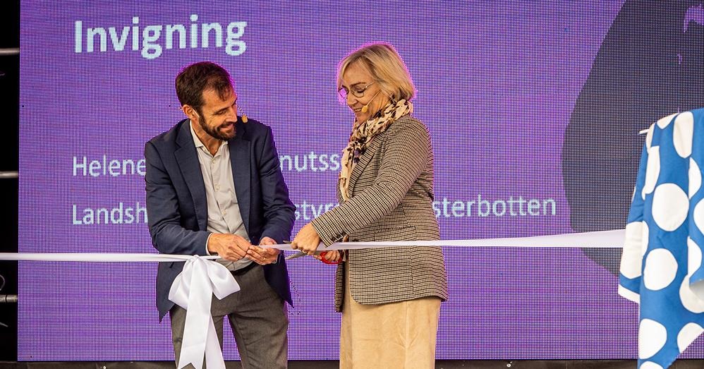 Landshövdingen, Helene Hellmark Knutsson, för Västerbotten invigde det nya vattenverket tillsammans med Vakins vd Robert Hansson.